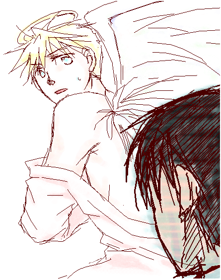そうこうして色々素敵絵拝ませて頂いている間に、即興でssをなどとお言葉を頂き、 みいらさまが絵を描いて下さるならとオネダリして描いて頂いた絵に恐れ多くも文章つけさせて頂きましたーっ! それがこちら↓ |