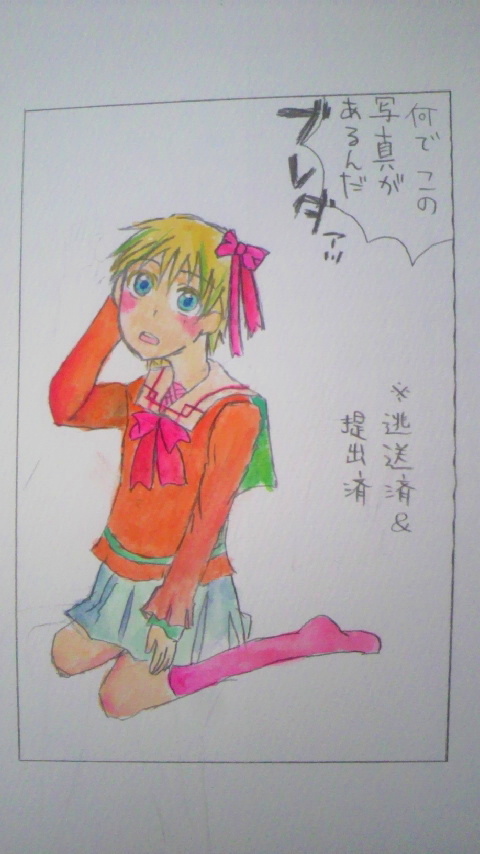 | 風汰さまからまたまた素敵絵頂いてしまいました。 テーマは「可愛いが一番の褒め言葉だと思ってる頃のハボ」ですv |