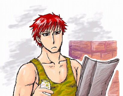 まずは古賀さまのオリキャラでみつき激ラブの「ジョイ」vvv うふふ、牛乳片手に朝刊を取りに出たところだそうですー。 もうね、何も言わずともまずジョイを描いてくださる辺り、 古賀さまがみつきのお守りしてくださってるの、バレバレですよね(苦笑)だって、ロイでもなくハボでもなくジョイ!! ジョイーーーーっ!!好きだーーーっ!!(おちつけ) |