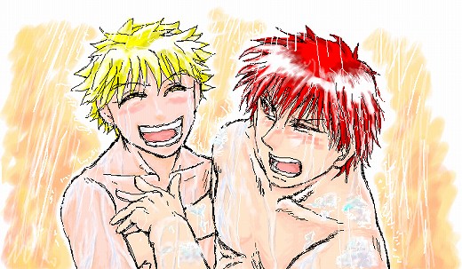 シャワールームでじゃれる二人。フツウにじゃれてるだけでも萌えなのに濡れ濡れでアワアワで…ッッ!!