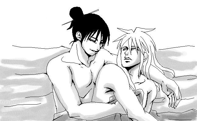 お次は正義さまのお話「皇帝の華」から呂将軍と雀鈴の二人v 当分お本編の方ではラブいシーンはオアズケなのでせめてここでだけでもと描いてくださいましたv いや〜〜んvラブラブーvv モノクロ、ステキですーっvv でも実はここに来るまでおつきのアルと黒豹の莉沙ちゃんの妨害を乗り越えてきたそうで(笑) 呂将軍、下手すると雀鈴に一生手を出せないかもしれません(苦笑) |