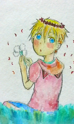 そして最後。 花冠を被った子ハボ!!やーん、可愛いですv きっとロイに呼ばれて振り向いたところに違いありません! この後ロイの分の花冠も作ってあげるんだろうなぁ…。 ピンクの犬耳フードも可愛いですv いつも遊びに来て下さるばかりか、こんな可愛いステキ絵まで 風汰さま、本当にありがとうございましたvv |