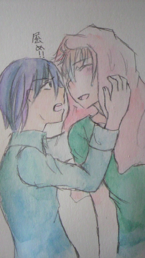 「なにかリクエストがあれば」と仰ってくださったので 「甘々なロイハボ」をお願いしたところかいてくださったのがコレ。 「お風呂上がりに髪の毛をロイに拭いてもらうの好きだからわざと適当に拭くハボと、 風邪ひいたらどうすると心配しつつ毎回ちょっと文句言いながら結局甘やかして拭くロイ」 だそうですv 濡れた髪を拭いてもらうハボ、カワイイ〜〜〜vv 嬉しくてちょっぴり照れくさいハボの笑顔がもー、かーわーいーい〜〜〜〜〜ッッvv 「屈め!」って言ってるロイもホントは嬉しいんですよね。 甘々なロイハボ、すっごい素敵ですvv |